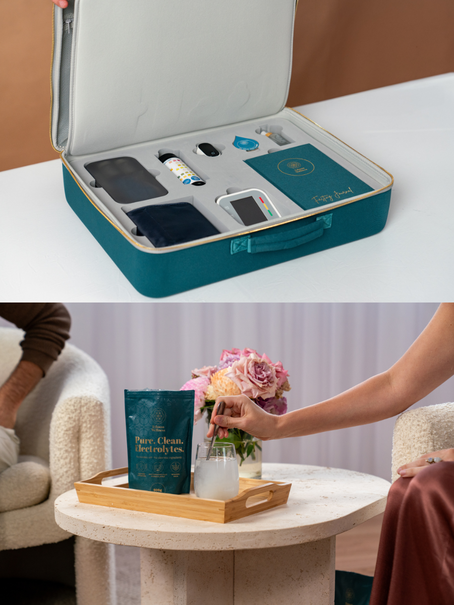 Our Home Fasting Kit includes everything you need to feel prepared, supported, and empowered throughout your journey — from high-quality supplements and hydration tools to helpful guides and daily essentials.